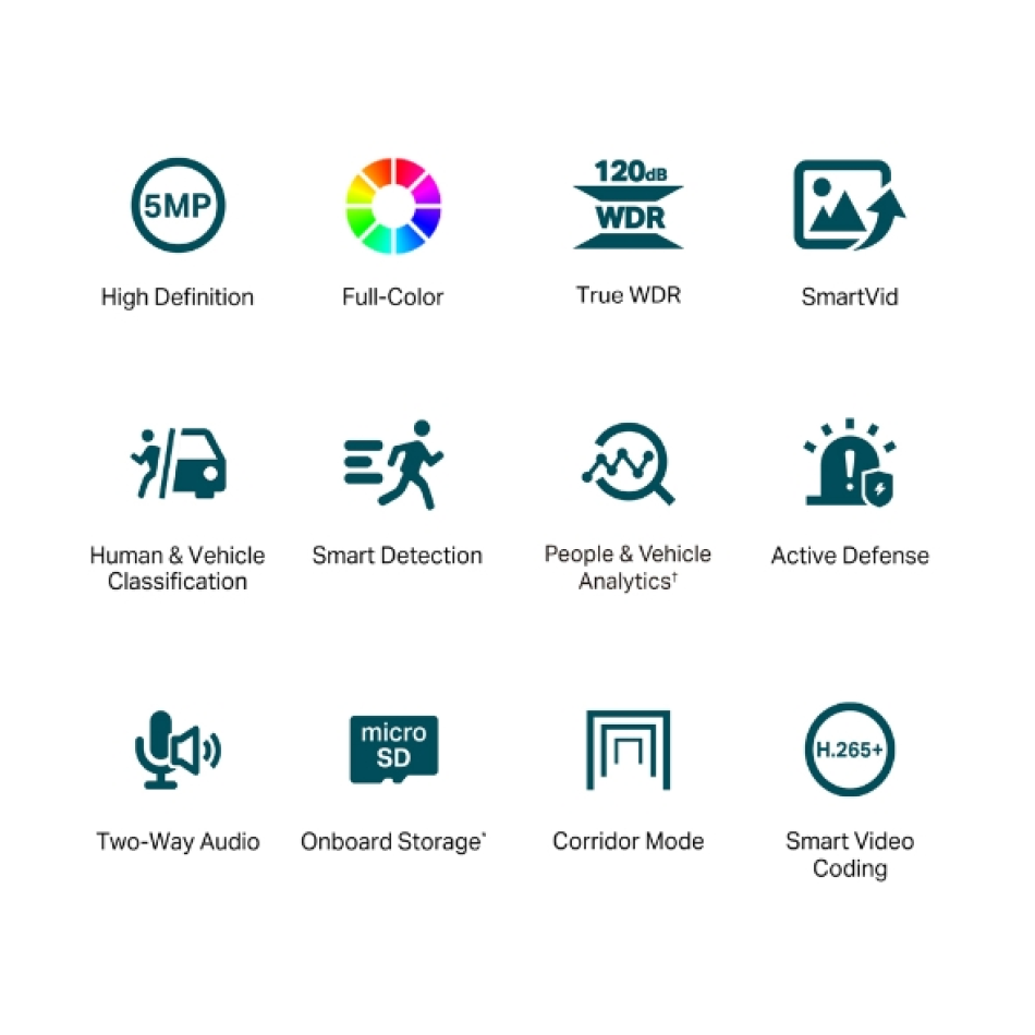 Monitoriza detalles nítidos y coloridos las 24 horas del día, incluso en la oscuridad más absoluta. La cámara VIGI Full-Color ofrece una resolución máxima de 5MP y garantiza una monitorización llena de color gracias a su objetivo de gran apertura, su sensor de alta sensibilidad y las luces suplementarias incorporadas.