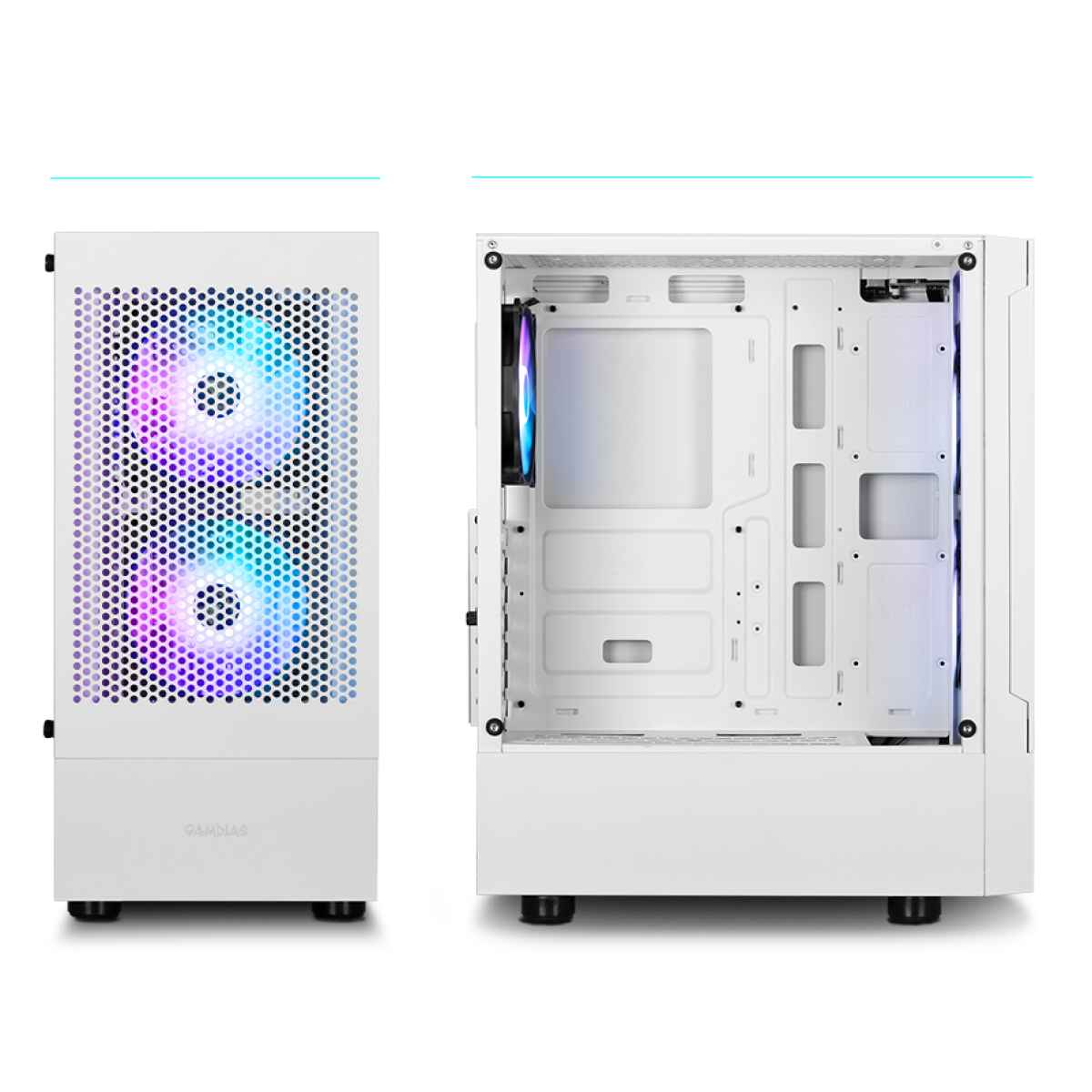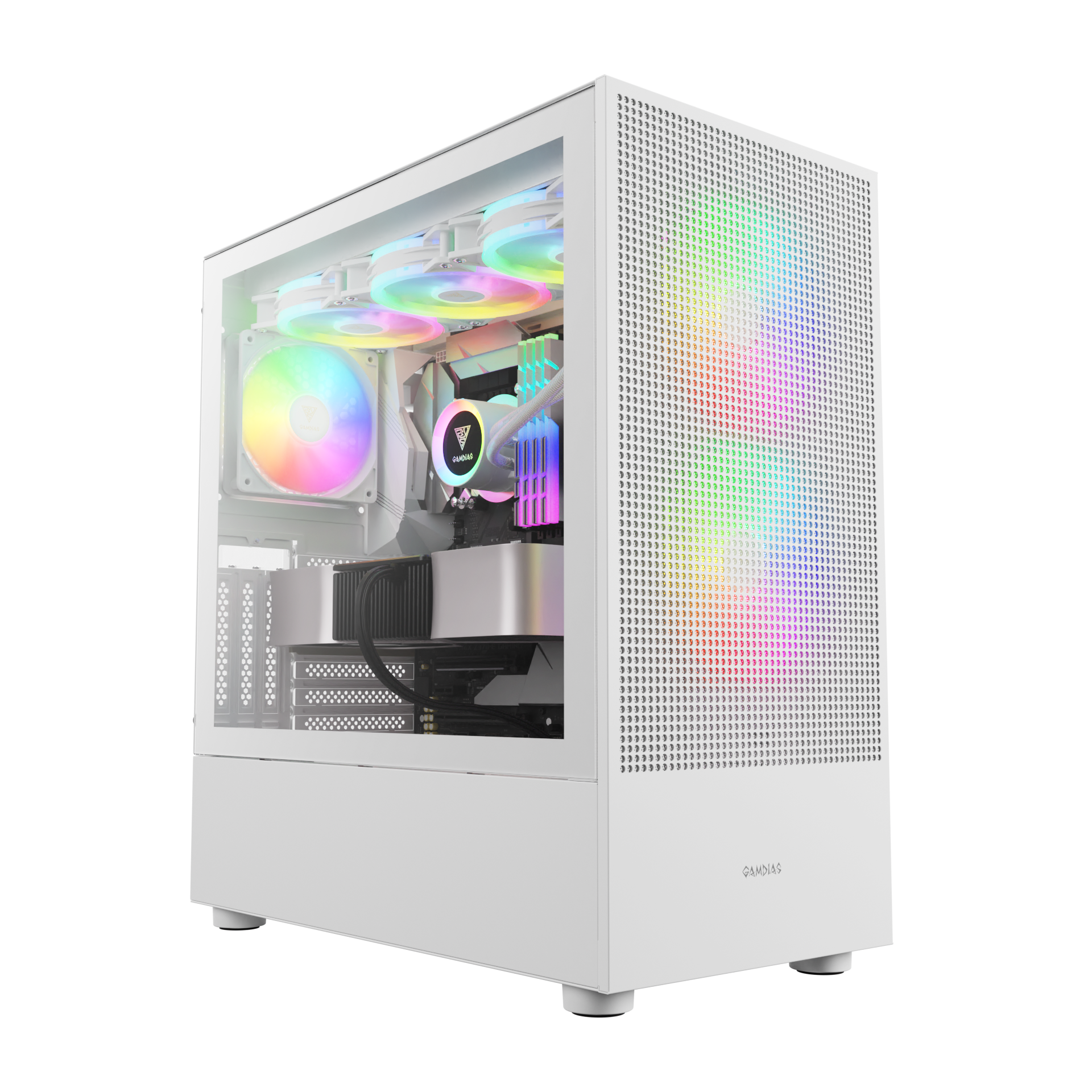 La serie TALOS E3 MESH, disponible en negro mate y blanco nieve, es un gabinete de torre media que ofrece una combinación perfecta de diseño compacto y rendimiento de flujo de aire. El gabinete cuenta con 3 ventiladores ARGB de 120 mm integrados con un panel frontal perforado de 5,0 mm para aprovechar el rendimiento del flujo de aire y lograr un estilo minimalista con paneles laterales de vidrio templado y un diseño de cubierta de fuente de alimentación.