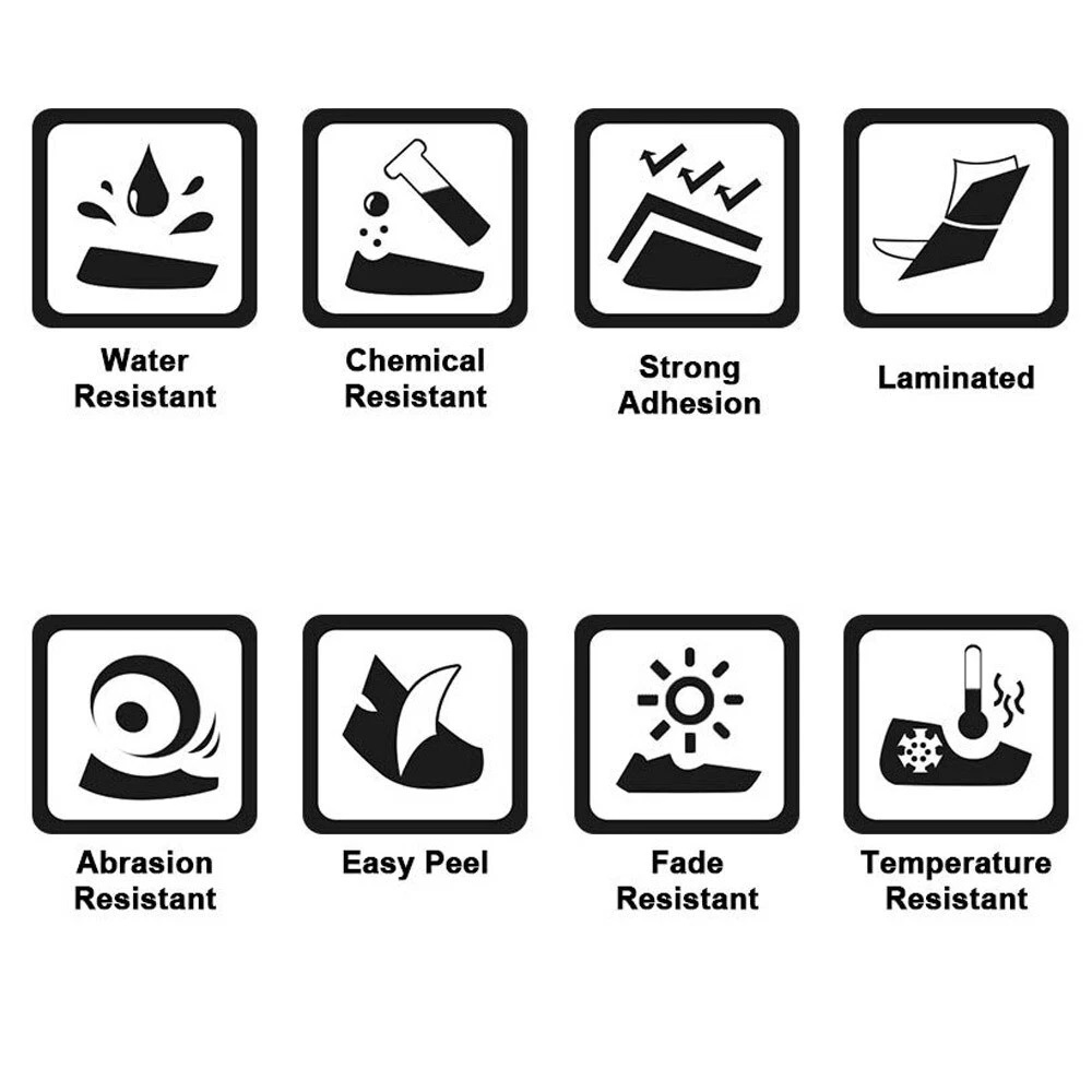 Características: Resistencia a la decoloración; Resistencia al agua ; Resistencia a la abrasión ; Resistencia química ; Resistencia a la temperatura