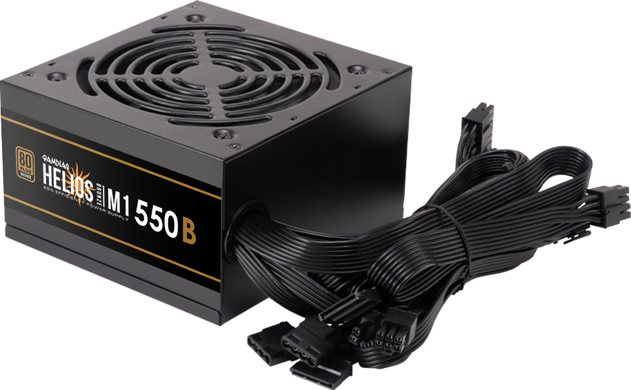 El HELIOS M1-550B cuenta con una certificación 80 PLUS Bronze que garantiza una eficiencia del 85%, y cables negros planos para facilitar la instalación y la gestión del cableado. También está equipado con un ventilador que puede ajustar automáticamente la velocidad del ventilador en función de la temperatura y garantizar un funcionamiento silencioso.