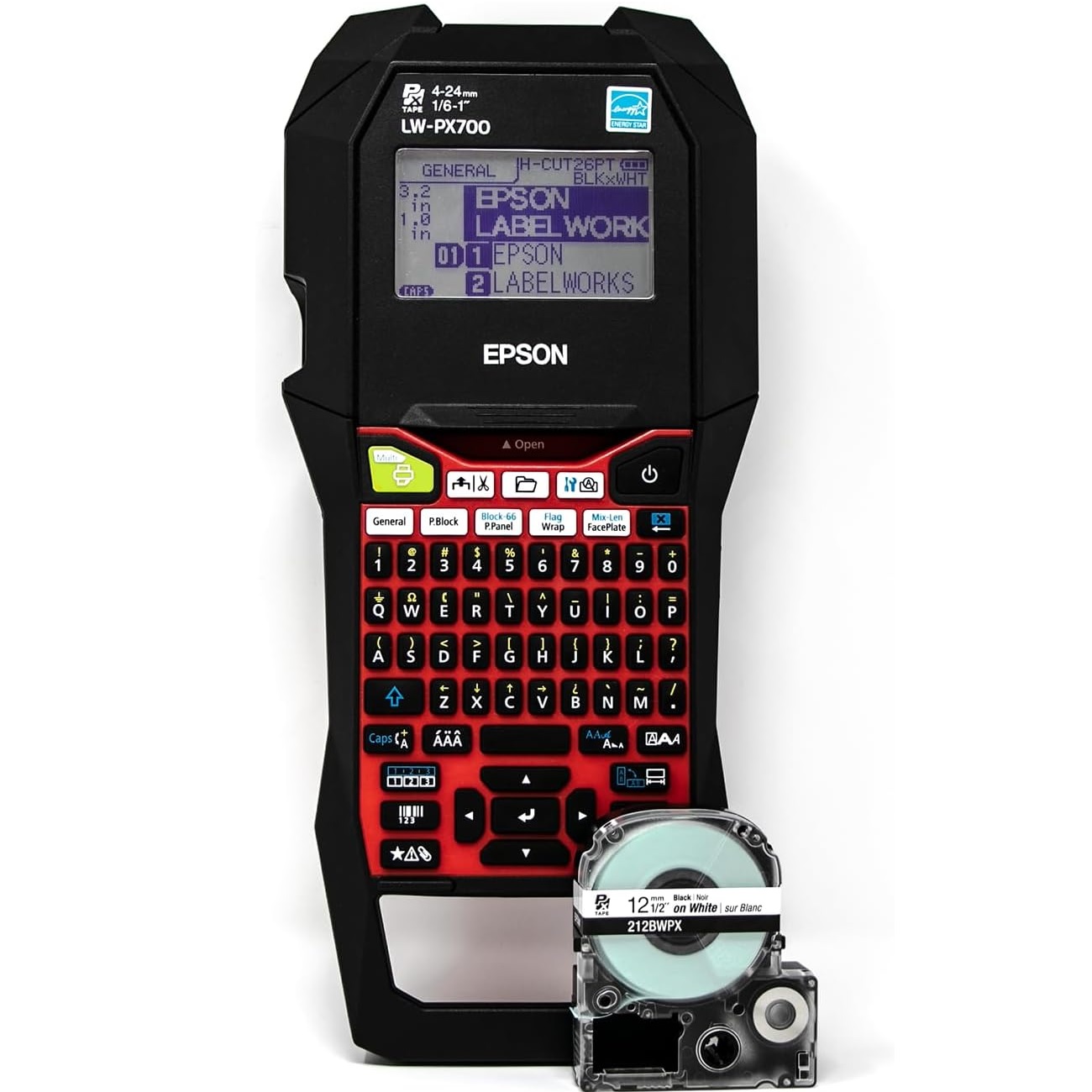 Impresora Epson LW-PX700, cartucho de cinta 212VTBWPX, adaptador de CA, manual del propietario